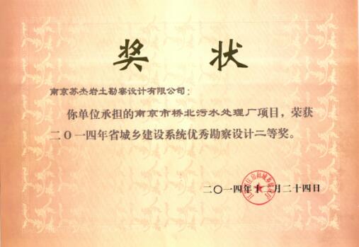 橋北污水省優(yōu)二等獎